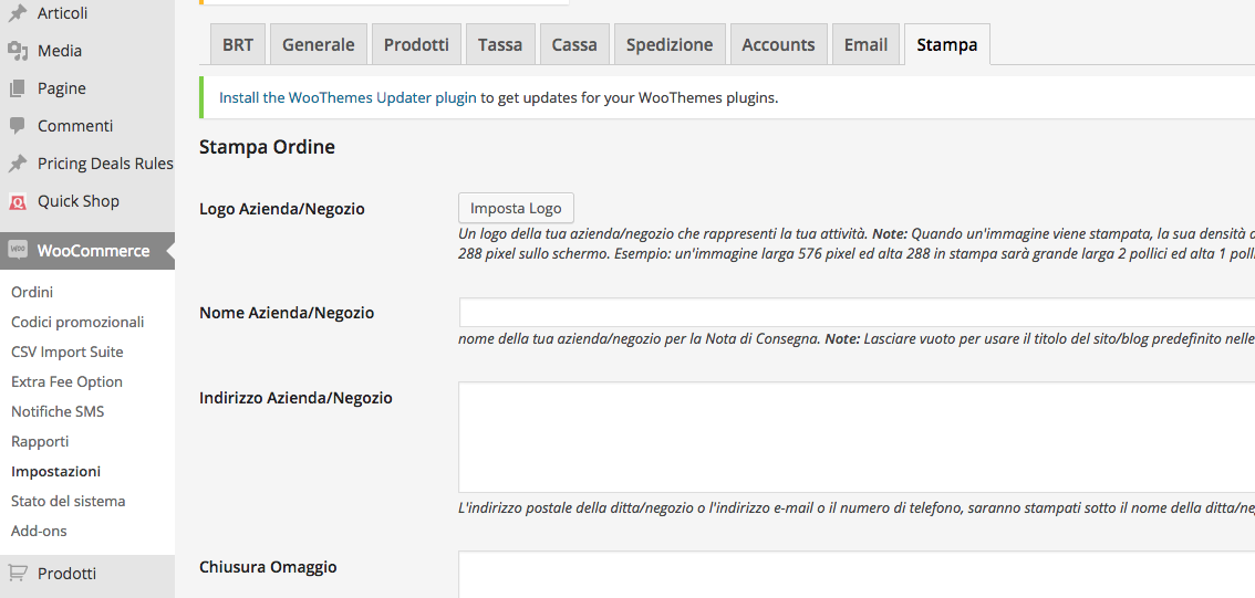 Schermata Plugin WooCommerce Print Invoice & Delivery Note – Impostazioni